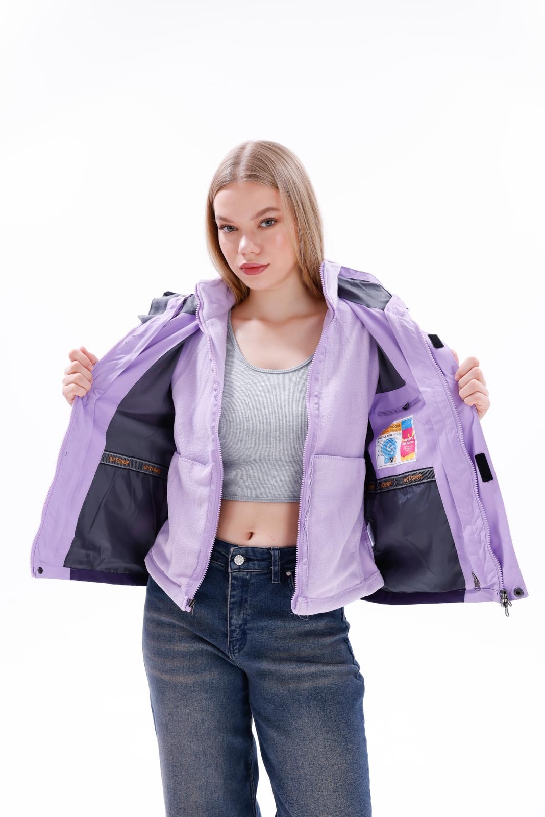Jack Wolfskin Rotwand 3in1 Kadın Mor Outdoor Ceketi - Mürdüm